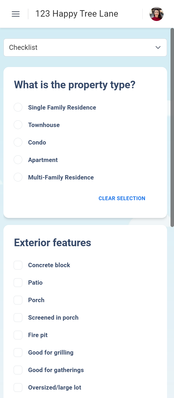 When assessing the property, record Audio Notes using your mobile phone or select property features using the Adaptive Checklist